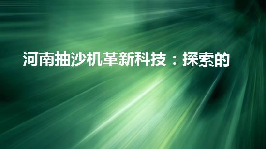 電抽沙機革新設計,提升效率!沙設備關鍵詞解析及市場前景探索
